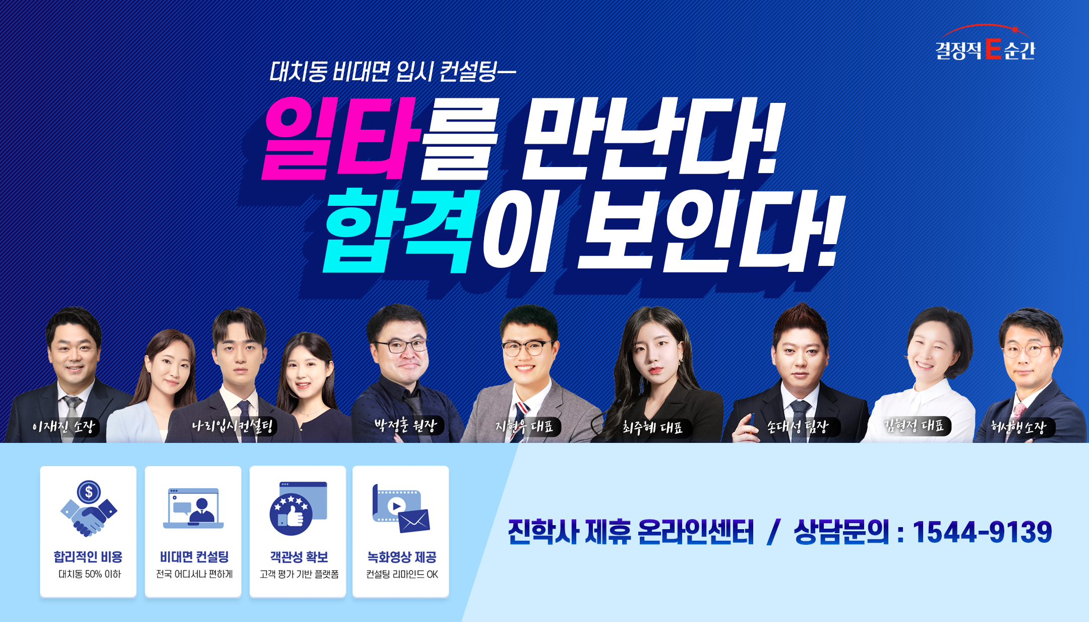 결정적 E순간은 오직! 전략적 합격 입니다! 최상의 개별상담으로 동영상과 보고서 제공